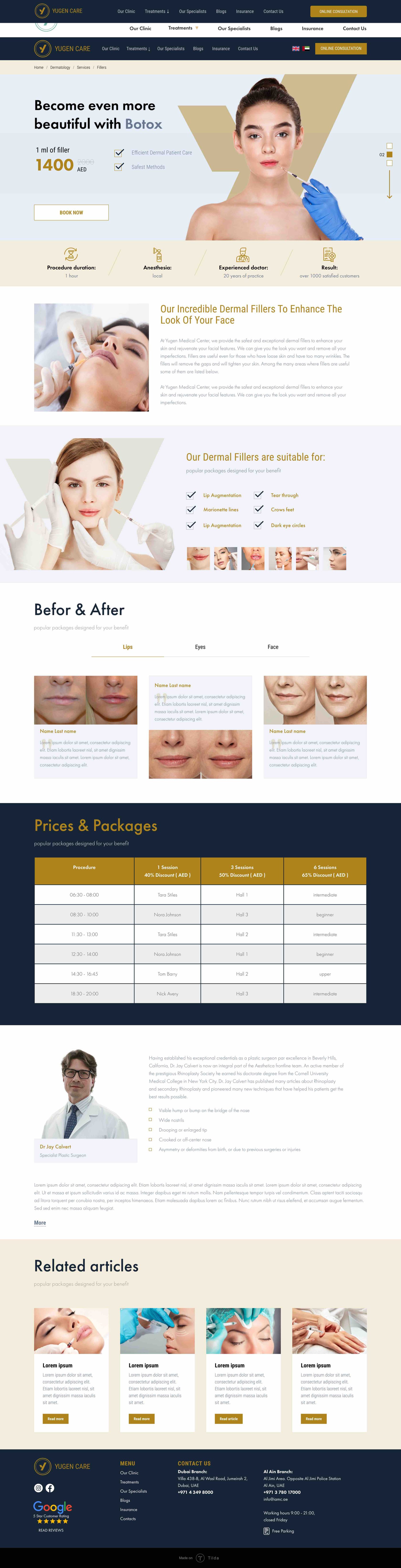 Since the website was an urgent requirement, we took the decision to initiate the development with the help of Tilda constructor. Actually, the value of this website is in the fact that the structure of sections is compliant with an actual demand/ the specific services of doctors. And each page of the service is represented as conversion landing.